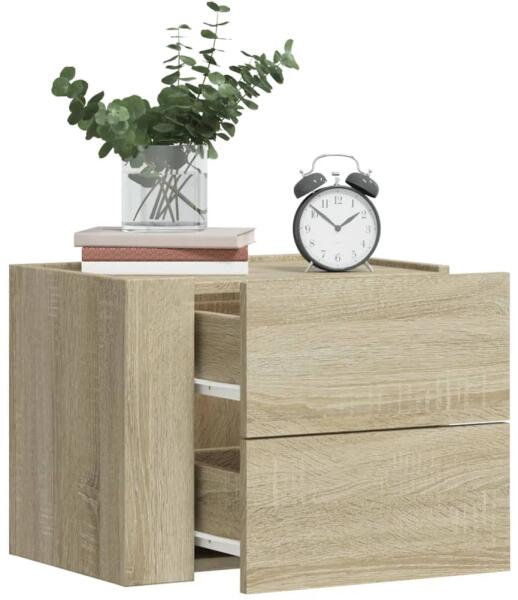 Ezek az elegáns falra szerelhető éjjeliszekrények otthona időtálló kiegészítői lesznek. Tartós anyag: A szerelt fa kivételes minőségű, sima felületű, szilárd, stabil, és ellenáll a nedvességnek. Bőséges tárolóhely: A lebegő éjjeliszekrény két fiókkal rendelkezik holmijai kézközelben történő rendezett tárolásához. Falra szerelhető: A fali éjjeliszekrény nem
