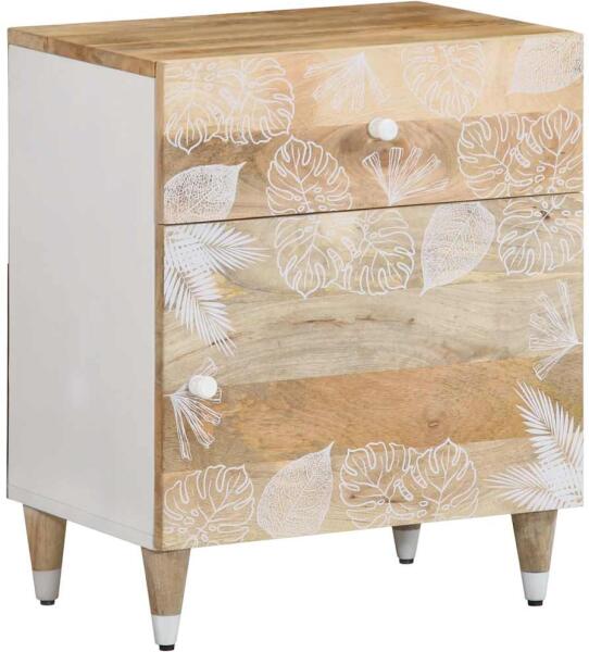Ez az elegáns kialakítású éjjeliszekrény otthona időtálló kiegészítője. Robusztus és stabil: A tömör mangófa egy erős, trópusi keményfa, mely rendkívüli tartóssága és szilárdsága miatt különösen kedvelt a bútorgyártásban. A fa gyönyörű erezetének köszönhetően minden darab kissé különbözik a többitől. Bőséges tárolóhely: Az éjjeliszekrény bőséges