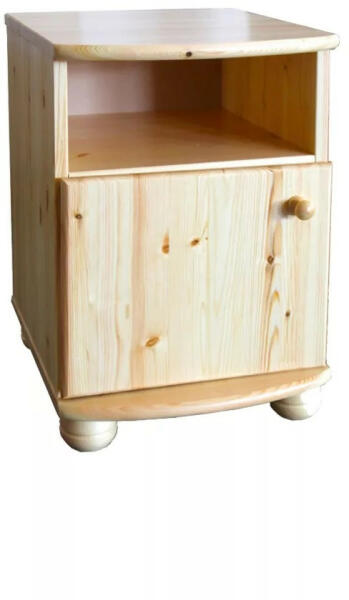 Tömör borovi fenyőből készült, magyar termék. Egyben érkezik, nem lapra szerelten. Csak ki kell csomagolni és már használhatja is! A képen balos látható, ajtós részben egy polccal. A Claudia 1 ajtós polcos éjjeliszekrény ívelt kialakításával a klasszikus vonalakat követi. Alapanyaga skandináv borovi fenyő, összeszerelést nem igényel. A fiókok lakkozott kivitelben fa f