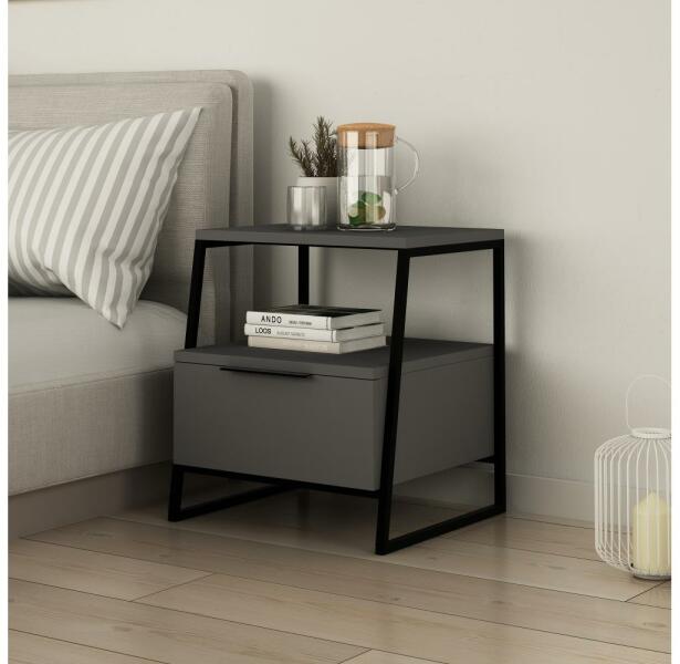 Ez az éjjeliszekrény egy csipetnyi modern bájt hoz környezetébe, és remek kiegészítője lesz otthonának. A masszív felépítésének köszönhetően az éjjeliszekrény rendkívül tartós. Töltsön el egy szép délutánt egy könyvvel, vagy tegye a szekrényt az ágy mellé, hogy kéznél legyenek a szépségmaszkok és kisebb kiegészítők. Ez a multifunkcionális szekrény tökéle