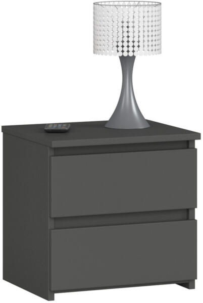 Modern, kompakt éjjeliszekrény két fiókkal, amely tökéletes kiegészítője minden hálószobának. A grafitszürke színű, kopásálló laminált bútorlapból készült szekrény praktikus tárolási megoldást kínál mindennapi használati tárgyaink számára. Elegáns és praktikus tárolási megoldás a hálószobábaAz AKORD CLP CL2 éjjeliszekrény a modern design és a funkcionali