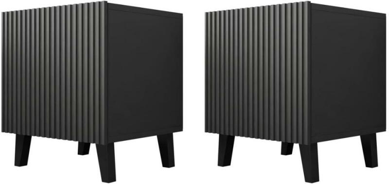 Két éjjeliszekrényből álló készlet. Egyszerű, modern stílusával minden otthonba illik. Tágas fiók a kéznél lévő dolgok tárolására. 16 mm vastag laminált forgácslapból készült. Lábak: műanyag (magassága 12 cm). Fogantyúk nélkül. Ez a bútor szétszerelve érkezik.