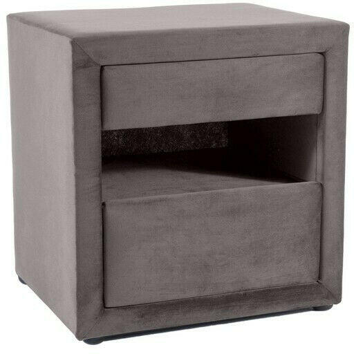 Elegáns tárolási megoldás a hálószobába Az ET-003 Velvet éjjeliszekrény a modern hálószoba tökéletes kiegészítője. A szürke bársony kárpitozású bútor két tágas fiókkal rendelkezik, amelyek között 14 cm távolság található. A 54 cm magas, 41 cm széles és 52 cm mély szekrény kompakt méretei ellenére jelentős tárolókapacitást biztosít. A prémium minőségű b