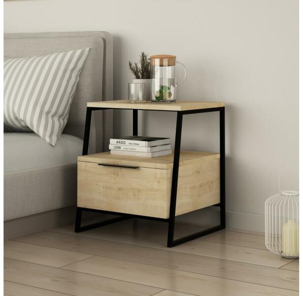 Ezek az egyszerű és kompakt dizájnnal ellátott éjjeliszekrények könnyen illeszkednek hálószobájába vagy nappalijába, és időtlen bájt kölcsönöznek a belső térnek. Tartós anyag: A szerelt fa kivételes minőségű, sima felületű, szilárd, stabil, és ellenáll a nedvességnek. Masszív váz: A vasváz erős szerkezetet és stabilitást biztosít. Bőséges tárolóhely: A kis