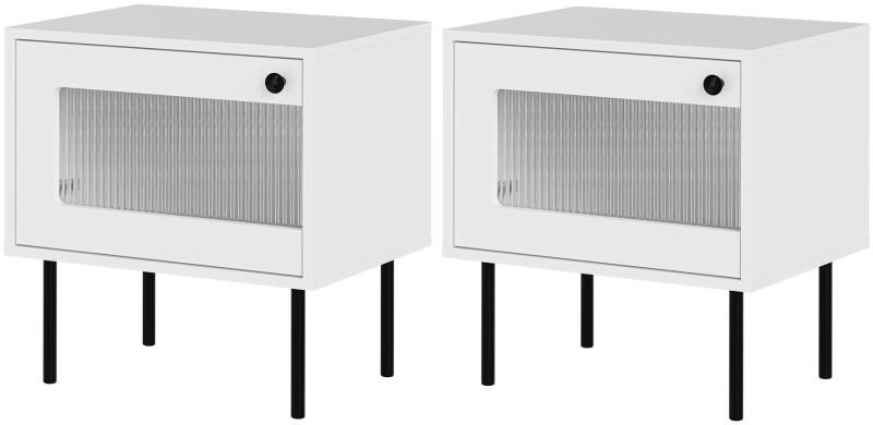 Két éjjeliszekrényből álló készlet. Egyszerű, modern stílusával minden otthonba illik. Tágas fiók a kéznél lévő dolgok tárolására. Erős laminált forgácslapból készült, 16 mm vastag. PUSH TO OPEN nyitórendszerrel. Lábak: műanyag (12 cm magas). Ez a bútordarab szétszedve érkezik.