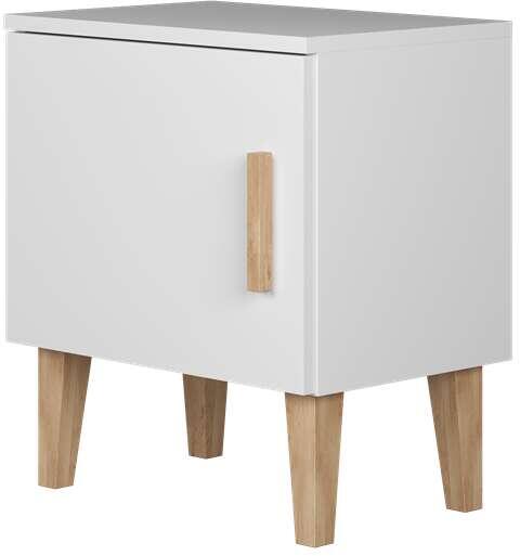Kubi fehér éjjeliszekrény A modern dizájnt és az elrendezés minimalizmusát hangsúlyozó, fa, tölgyfa lábakkal ellátott Kubi éjjeliszekrény tökéletes lesz kortárs gyermek- és tinédzserszobákba. A Kubi kollekció bútorait a funkcionalitás és az időtlen esztétika iránti szenvedély jellemzi. A Kubi éjjeliszekrény szürke vagy fehér bútorlapból készül, 18 mm vastag. A s