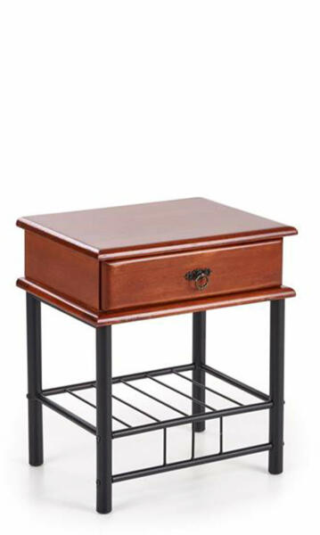 Elegáns és stílusos Fliona éjjeliszekrény, amely minden hálószoba tökéletes kiegészítője. Az éjjeliszekrény fekete színű acél szerkezettel rendelkezik és tömör fából készül antik cseresznye színben. Az éjjeliszekrény díszfogantyúkkal rendelkezik a fiók résznél. Egy fiókkal és egy egyszerű fém polccal rendelkezik. Tökéletes az éjjelilámpának vagy az éppen o
