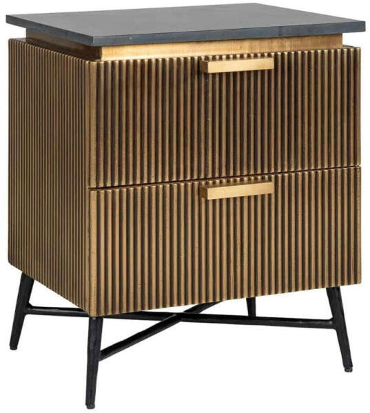 A Richmond Ironville éjjeliszekrény elegáns darab, amely ötvözi a fekete márványlapot az arany bordázott fronttal. Modern és luxus megjelenésével tökéletes kiegészítője lehet bármely hálószobának. Luxus és funkcionalitás tökéletes harmóniábanAz Ironville kollekció éjjeliszekrénye a modern luxus megtestesítője. A fekete márványlap és az arany színű, bordázott fr