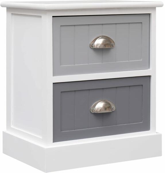 Színe: szürke Anyaga: Császárfa + MDF Teljes méret: 38 x 28 x 45 cm (Szé x Mé x Ma) Fiók mérete: 30 x 21,3 x 14 cm (Szé x Mé x Ma) 2 fiókkal Könnyen guruló, fogantyúval ellátott fiók Dobja fel otthonát némi eleganciával vintage stílusú éjjeliszekrényünk segítségével! Kanapé melletti telefonállványként is használható. A kompakt szekrény 2 könnyen kihúzható fió