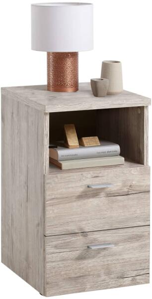 Színe: homoktölgy Anyaga: melaminbevonatú forgácslemez Mérete: 39,9 x 35 x 60 cm (Ho x Szé x Ma) Modern éjjeliszekrény két fiókkal és egy polccal A modern, FMD éjjeliszekrény szemet gyönyörködtető darabja lesz hálószobájának. Ez az elegáns, modern kialakítású éjjeliszekrény két fiókkal rendelkezik, amelyek elegendő helyet biztosítanak mindennek, amit kéznél szeretn