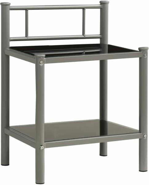 Színe: szürke és fekete Anyaga: üveg, porszórt bevonatú fém Mérete: 45 x 34,5 x 60,5 cm (Szé x Mé x Ma) Ez az éjjeliszekrény egyszerű, mégis stílusos kiegészítője lehet otthona lakberendezésének. Fém vázának köszönhetően az éjjeliszekrény rendkívül stabil és robusztus. Az üvegpolc könnyen tisztítható és bőséges helyet kínál holmijai rendezett, elérhető kö