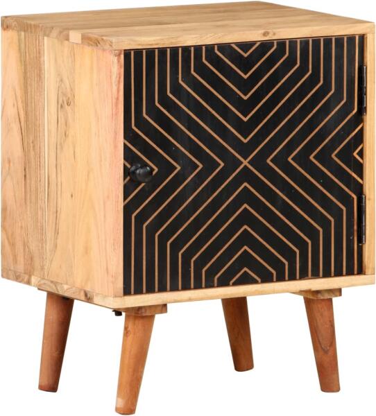 Anyaga: tömör akácfa natúr felülettel, szerelt fa Mérete: 40 x 30 x 50 cm (Szé x Mé x Ma) Szekrény magassága: 35 cm Az elülső ajtó fekete festéssel rendelkezik Összeszerelést igényel: igen Csempésszen egy csipetnyi eleganciát és kényelmet otthona dekorációjába ezzel a fa éjjeliszekrénnyel! Ez az éjjeliszekrény tömör akácfából, egy trópusi keményfából készült,