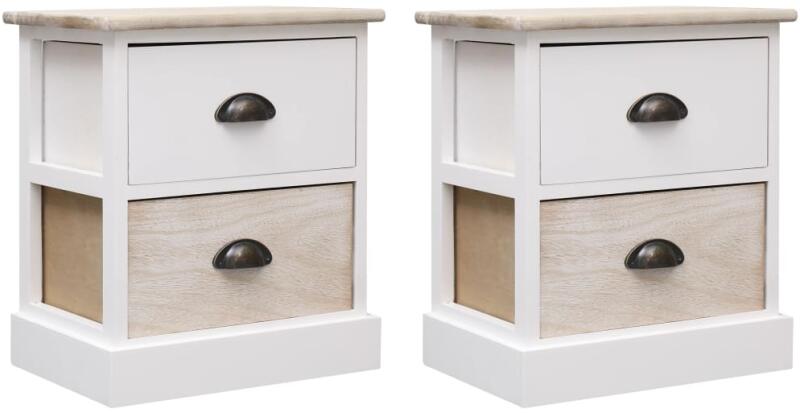 Színe: Fehér és természetes Anyaga: császárfa Teljes mérete: 38 x 28 x 45 cm (Ho x Szé x Ma) Fiók mérete: 30 x 21,3 x 14 cm (Ho x Szé x Ma) 2 fiókkal Könnyen guruló, fogantyúval ellátott fiók A szállítmány 2 db éjjeliszekrényt tartalmaz Ezek a kétfiókos éjjeliszekrények egyszerű, mégis letisztult dizájnnal rendelkeznek, és akár telefonállványként is használhatóa