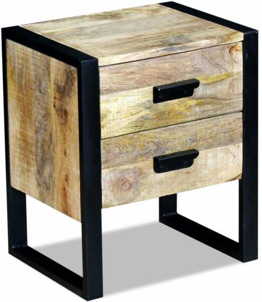 Anyag: Tömör mangó fa + vas Méretek: 43 x 33 x 51 cm (Ho x Szé x Ma) 2 fiókkal Teljesen kézzel készített Csiszolt, festett és lakkozott Ez az asztal ipari stílusú ami megkülönböztető kiegészítést ad hozzá minden szobához. Használható éjjeli szekrényként, hálószoba szekrényként és fiókos szekrényként. Az az asztal tömör mangófából készült aminek köszönhet