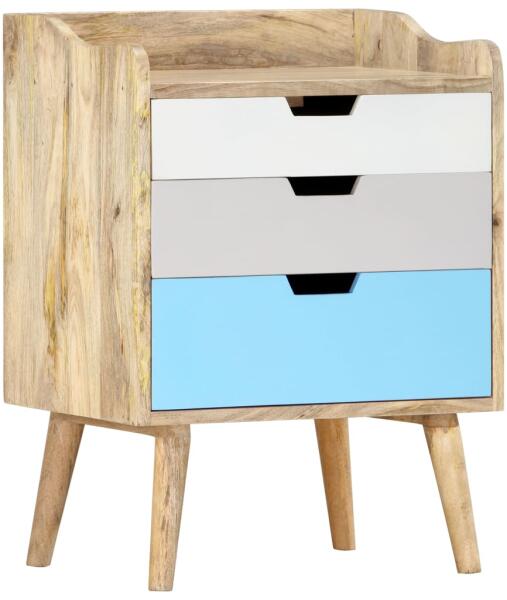 Színe: barna és színes Anyaga: tömör mangófa Mérete: 47 x 35 x 63 cm (Szé x Mé x Ma) 3 fiókkal Felületkezelés: csiszolt, festett és lakkozott Összeszerelést igényel: igen Ez az éjjeliszekrény rusztikus bájt sugároz, így rendkívül mutatós kiegészítője lehet hálószobájának. Az éjjeliszekrény kézzel készült tömör mangófából, mely rendkívül strapabíró, tart