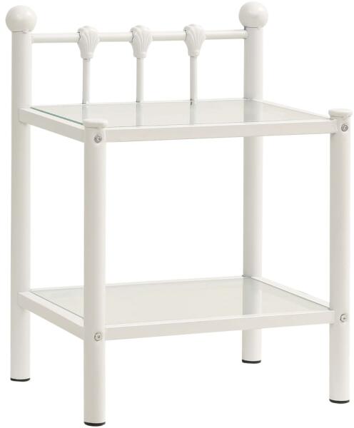 Színe: fehér és átlátszó Anyaga: üveg, porszórt bevonatú fém Mérete: 45 x 34,5 x 60,5 cm (Szé x Mé x Ma) Ez az éjjeliszekrény egyszerű, mégis stílusos kiegészítője lehet otthona lakberendezésének. Fém vázának köszönhetően az éjjeliszekrény rendkívül stabil és robusztus. Az üvegpolc könnyen tisztítható és bőséges helyet kínál holmijai rendezett, elérhető