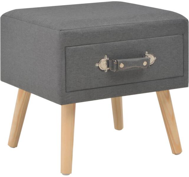 Színe: sötétszürke Anyaga: szövet + tömör fenyőfa Mérete: 40 x 35 x 40 cm (Szé x Mé x Ma) Egy fiókkal Anyag: Poliészter: 100% Ez az éjjeliszekrény elegáns dizájnjával kiváló kiegészítője lehet otthonának. Ez a tömör fenyőfából és szövetből készült éjjeliszekrény rendkívül tartós és stabil. A kompakt szövet szekrény finoman betolható fiókkal rendelkezik,