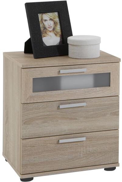 Színe: tölgyfa Anyaga: melaminbevonatú forgácslemez Mérete: 45 x 38 x 53 cm (Ho x Szé x Ma) Éjjeliszekrény 3 fiókkal (felső fiók üvegbetéttel) Minden fiók legfeljebb 2 kg súlyt bír el (a teteje 15 kg-ot) Könnyen összeszerelhető A szállítmány csak az éjjeliszekrényt tartalmazza Az FMD éjjeliszekrény hálószobája szemet gyönyörködtető darabja lesz! A modern kialakít
