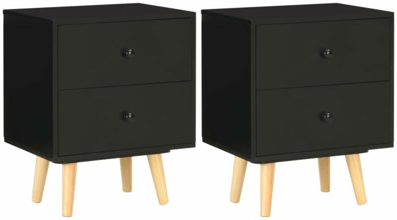 Színe: fekete Anyaga: MDF + tömör fenyőfa lábak Mérete: 40 x 30 x 50 cm (Szé x Mé x Ma) 2 fiókkal Karcolásvédelemmel A szállítmány 2 db éjjeliszekrényt tartalmaz Csempésszen egy csipetnyi skandináv stílust otthonába stílusos éjjeliszekrényeinkkel, melyek biztosan praktikus és dekoratív kiegészítői lesznek hálószobájának! Az asztallap ideális ébresztőóra, olvasó