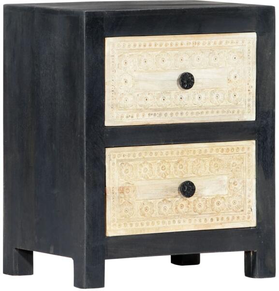 Gyártó: vidaXL Modell: 282722 Leírás: Vigye a kézzel faragott mintázat luxusát otthonába elegáns éjjeliszekrényünkkel! A tömör mangófából készült éjjeliszekrény a gyönyörű polírozásnak, festésnek és lakkozásnak köszönheti kifinomult megjelenését. A két, kézzel faragott mintával ellátott fiók még mutatósabbá teszi az éjjeliszekrényt, ráadásul bőséges h
