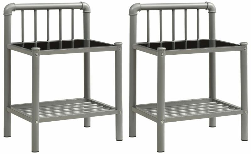 Színe: szürke és fekete Anyaga: üveg, porszórt bevonatú fém Mérete: 45 x 34,5 x 60,5 cm (Szé x Mé x Ma) A csomag tartalma: 2 db éjjeliszekrény Ez a 2 éjjeliszekrény egyszerű, mégis stílusos kiegészítője lehet otthona lakberendezésének. Fém vázának köszönhetően az éjjeliszekrény rendkívül stabil és robusztus. Az üvegpolc könnyen tisztítható és bőséges helyet