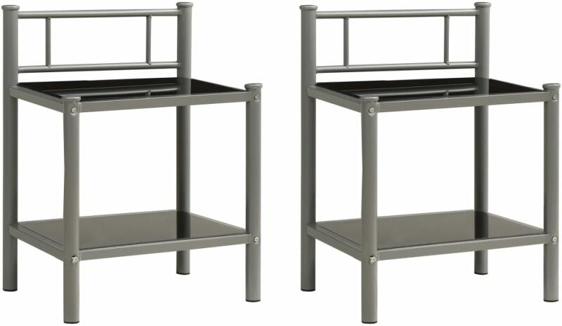 Színe: szürke és fekete Anyaga: üveg, porszórt bevonatú fém Mérete: 45 x 34,5 x 60,5 cm (Szé x Mé x Ma) A csomag tartalma: 2 db éjjeliszekrény Ez a 2 éjjeliszekrény egyszerű, mégis stílusos kiegészítője lehet otthona lakberendezésének. Fém vázának köszönhetően az éjjeliszekrény rendkívül stabil és robusztus. Az üvegpolc könnyen tisztítható és bőséges helyet