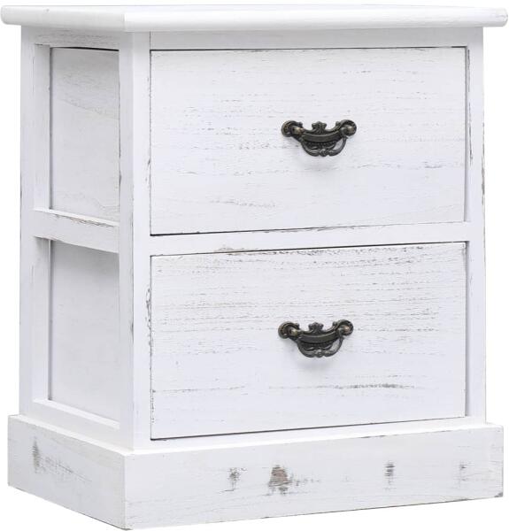 Színe: fehér Anyaga: császárfa Mérete: 38 x 28 x 45 cm (Szé x Mé x Ma) 2 fiókkal További összeszerelésre nincsen szükség Vigyen egy cseppnyi régimódi bájt otthonába elegáns éjjeliszekrényünkkel! Kanapé melletti telefonállványként is használható. A császárfából készült éjjeliszekrény rendkívül tartós és stabil. Emellett a két fiókkal felszerelt éjjeliszekr