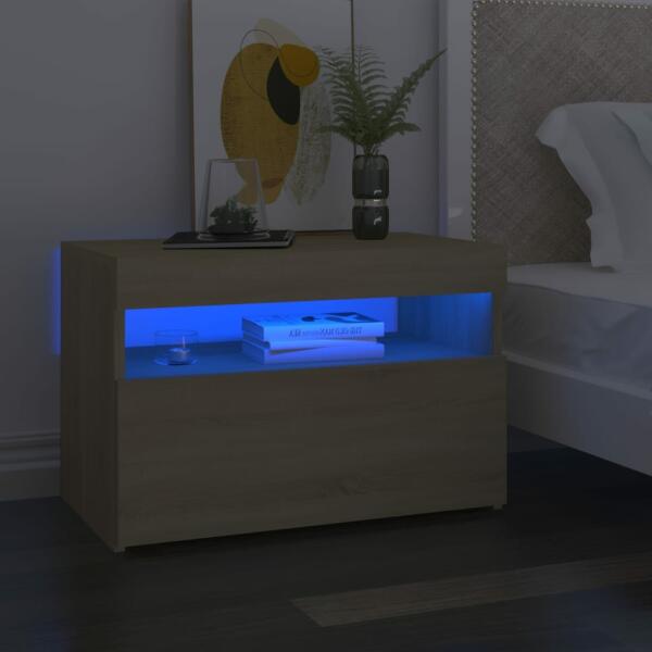Színe: sonoma tölgy Anyaga: szerelt fa Mérete: 60 x 35 x 40 cm (Ho x Szé x Ma) RGB LED-lámpával Összeszerelést igényel: igen Ez a stílusos, mégis praktikus kialakítású LED lámpákkal ellátott éjjeliszekrény minden bizonnyal szobája középpontjává fog válni. Az éjjeliszekrény stabil felépítése rendkívül strapabíróvá teszi. Rengeteg hely marad a magazinok, könyvek,