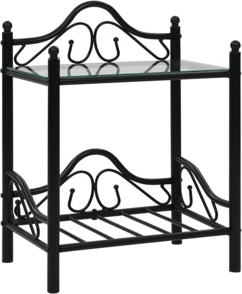 Színe: fekete Anyaga: acél és edzett üveg Mérete: 45 x 30,5 x 60 cm (Szé x Mé x Ma) Edzett üveg vastagsága: 5 cm 2 polccal Ez az éjjeliszekrény időtlen stílusú darabja lesz otthonának. Az éjjeliszekrény masszív acél vázával és edzett üveg asztallapjával stabil és strapabíró. Az asztalnak 2 polca van, ahová tehet különféle apró tárgyakat. Az ívelt vonalú acélszer