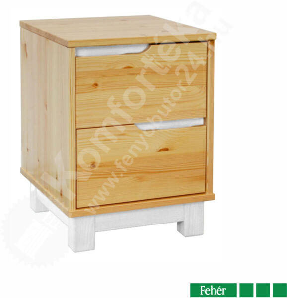 Foganttyú nélküli, modern, letisztult, elegáns, tömör fenyő éjjeliszekrény.