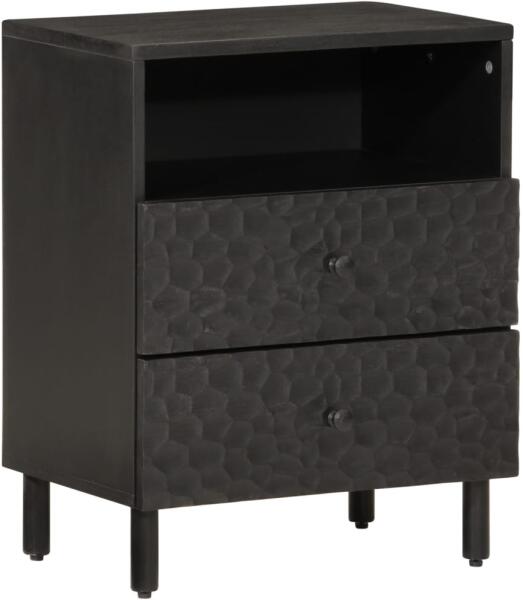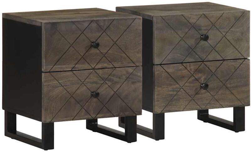 Csempésszen egy csipetnyi bájt otthonába ezekkel a stílusos éjjeliszekrényekkel! Robusztus és stabil: A tömör mangófa egy erős, trópusi keményfa, mely rendkívüli tartóssága és szilárdsága miatt különösen kedvelt a bútorgyártásban. A fa gyönyörű erezetének köszönhetően minden darab kissé különbözik a többitől. Fém lábak: Az éjjeliszekrényt erős fémlábak