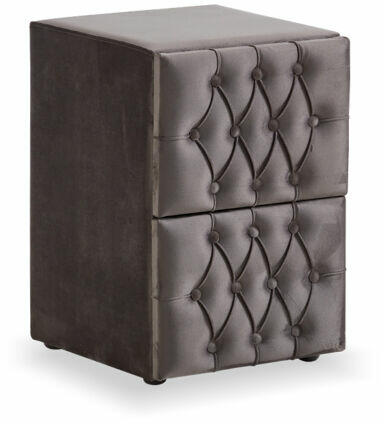 A Royal éjjeliszekrény ötvözi az egyszerűséget és az eleganciát. Puha, barátságos anyaga az ágykerettel megegyező szürke színű és minden kiegészítőhöz jól illeszkedik. Két fiókja fekete fogantyúk segítségével húzhatóak ki. Az anyag ismételt megjelenése az ágykereten, matracon és az éjjeliszekrényen kellemes összhangot biztosít hálószobájának. Rendelje meg e