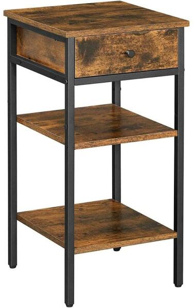 éjjeliszekrény, végasztal, magas éjjeliszekrény fiókkal és 2 tárolópolccal, helytakarékos, ipari díszítőasztal, rusztikus barna és fekete: A legjobb társ az ágy mellett: a meleg barna szín és a matt fekete váz természetes stílust és kellemes légkört teremtenek. Láttad a polcokat és a fiókot? Ennyi hely - nagy és gyönyörű Bőséges hely: egy asztallap, egy fiók és 2