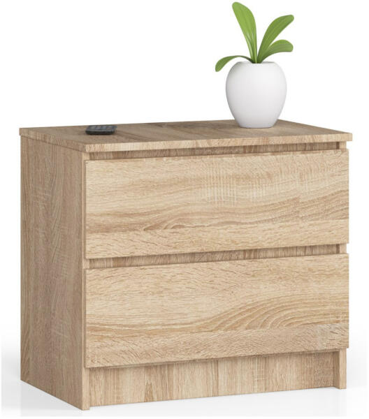 Modern és praktikus kétfiókos éjjeliszekrény Sonoma tölgy színben, amely tökéletes tárolási megoldást kínál a hálószobába. Kopásálló laminált lapból készült, ABS élzárással a tartósság érdekében. Kompakt és stílusos tárolási megoldásA K60 éjjeliszekrény egy modern és sokoldalú bútordarab, amely tökéletesen ötvözi a funkcionalitást és az esztétikát.
