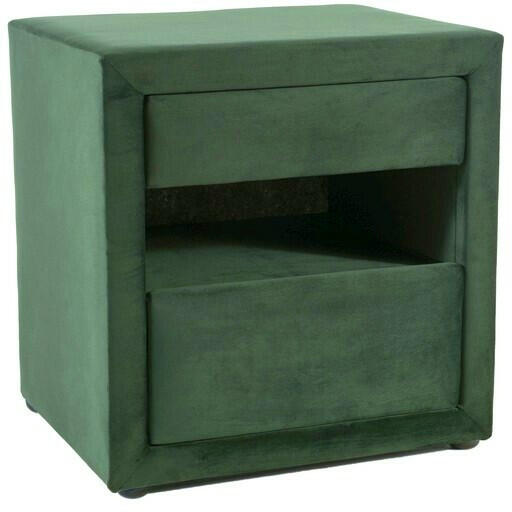 Elegáns, kétfiókos éjjeliszekrény puha bársony kárpitozással, amely tökéletes kiegészítője lehet hálószobájának. A zöld színű bársony borítás és a modern dizájn harmonikusan ötvözi a funkcionalitást és a stílust. Elegáns kényelmet kínáló bársonyos éjjeliszekrényAz ET-003 Velvet éjjeliszekrény a modern hálószobai bútorok tökéletes megtestesítője. A 54