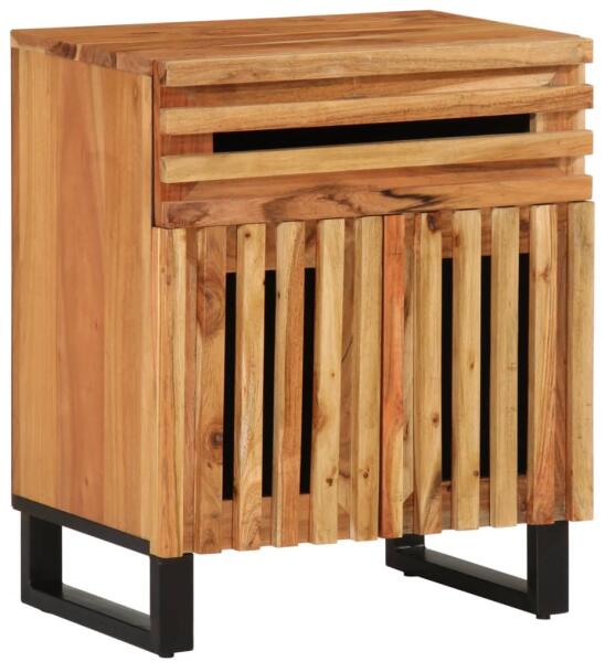 Emelje magasabb szintre otthona berendezését ezzel az ipari bájt sugárzó, kiváló tervezésű elegáns éjjeliszekrénnyel. Ez a négy fémlábbal ellátott éjjeliszekrény stabil és masszív. Ezenkívül a éjjeliszekrény három fiókkal lett ellátva, amelyek bőséges helyet kínálnak a dolgok rendezett, kézközelben történő elhelyezésére. Nedves ruhával könnyen tisztítható.