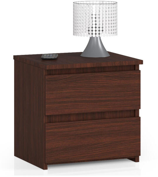 Modern, kompakt éjjeliszekrény két fiókkal, amely tökéletes kiegészítője hálószobájának. A wenge színű, kopásálló laminált bútorlapból készült darab praktikus tárolási megoldást kínál mindennapi használati tárgyai számára. Elegáns és praktikus tárolási megoldás hálószobájábaEz a modern vonalvezetésű éjjeliszekrény tökéletesen ötvözi a funkcionalitá