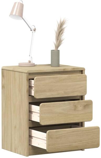 Ez a stílusos éjjeliszekrény jól fog illeni hálószobájába vagy nappalijába, és időtlen bájt csempész otthonába. Tömör fenyőfa: A tömör fenyőfa egy gyönyörű természetes anyag. A fenyőfa egyenes erezetű, a csomók pedig jellegzetes, rusztikus megjelenést biztosítanak az anyagnak. A tömör fenyőfából készült éjjeliszekrény erős és stabil. Bőséges tárolóhely: