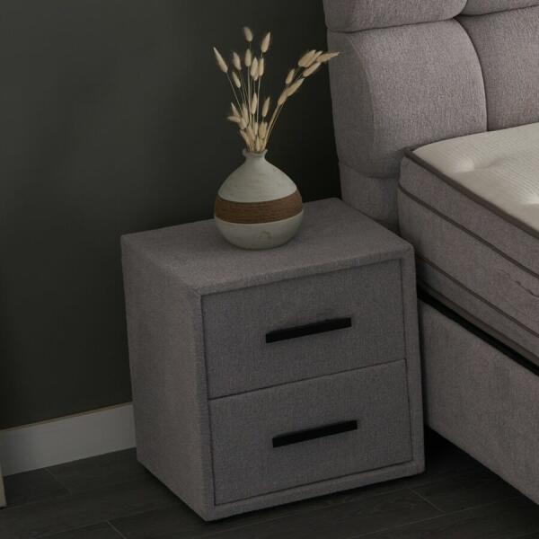 A Climate Balance kárpitozott, 2 fiókos éjjeliszekrény elegáns, kellemes hangulatú kiegészítője az Climate Balance ágykeretnek. Bevonásához használt puha, plüss bézs anyag az ágykerettel megegyező, így tökéletesen illenek egymáshoz. Az anyag ismételt megjelenése a Climate Balance ágykereten, Climate Balance matracon, Climate Balance padon és a Climate Balance éjjeliszekr