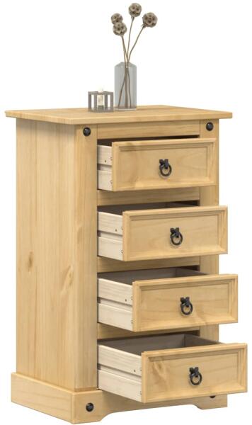 Ezek az elegáns kialakítású fa éjjeliszekrények otthona időtálló kiegészítői lesznek. Tömör fenyőfa: A tömör fenyőfa egy gyönyörű természetes anyag. A fenyőfa erezete egyenes, a csomók adják az anyag jellegzetes, rusztikus megjelenését. Bőséges tárolóhely: A 3 fiókkal rendelkező éjjeliszekrény bőséges helyet biztosít magazinjai, távirányítói és egyéb apr