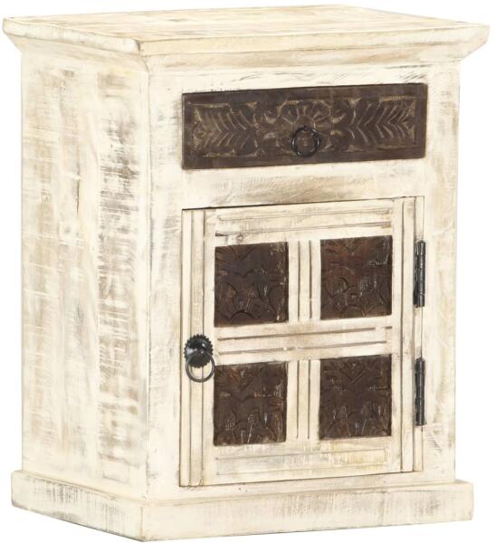 Ez az éjjeliszekrény vintage bájt áraszt, és otthona tökéletes kiegészítője lesz. Az éjjeliszekrény tömör mangófából készült, amely egy sűrű erezetű keményfa. A nyers mangófa nemcsak erős, elbírva a rá nehezedő súlyt, de időtálló is. Ezért ez a gyönyörű hálószobaszekrény stabil, tartós és szemet gyönyörködtető. A tökéletes kézműves munka garantálja