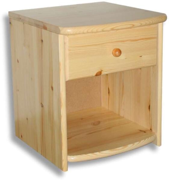 Tömör borovi fenyőből készült, Magyar termék. Az éjjeliszekrény könnyen kezelhető, és bármilyen típusú ággyal és enteriőrrel kombinálható lehet. Az éjjeliszekrény méretei lehetővé teszik, hogy szükség szerint tároljunk rajta, például az éjszakai olvasáshoz szükséges könyveket vagy az ébresztőórát.