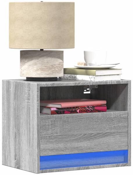 Díszítse hálószobáját ezzel a LED-es lámpával felszerelt, falra szerelhető éjjeliszekrénnyel! Könnyedén beleolvad bármilyen stílusú berendezésbe! Stabil és tartós anyag: A szerelt fa tartós és stabil anyag sima felülettel, amely ellenáll a nedvességnek, a vetemedésnek és a hasadásnak, így megbízható választás különféle célokhoz. RGB LED-világítás a kellemes k