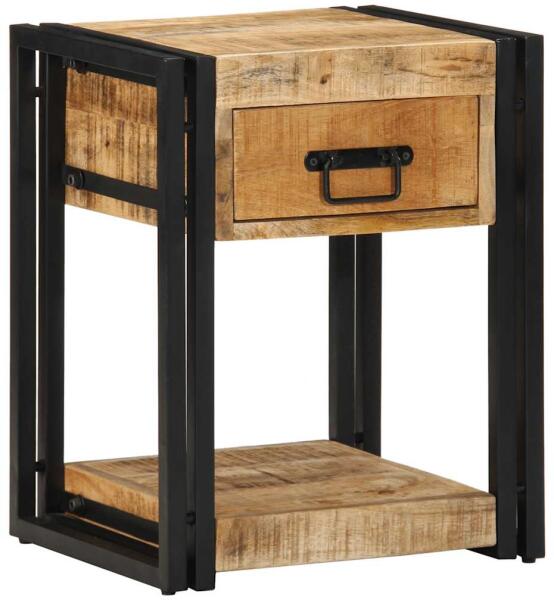 Ezek az ipari stílusú fa éjjeliszekrények otthona praktikus és dekoratív kiegészítői lesznek. Tömör mangófa: A tömör mangófa egy erős, trópusi keményfa, melyből strapabíró bútorok készíthetőek. A fa gyönyörű erezetének köszönhetően minden darab kissé különbözik a többitől. Bőséges tárolóhely: Az éjjeliszekrény egy rekesszel rendelkezik, így bőséges he