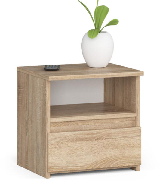 Modern és praktikus éjjeliszekrény egy fiókkal, Sonoma tölgy kivitelben. A 40x40x35 cm-es kompakt méretével és kopásálló laminált lapból készült szerkezetével tökéletes választás bármely hálószobába. Elegáns és praktikus tárolómegoldás a hálószobábaAz AKORD CL1 éjjeliszekrény a modern hálószobai bútorok tökéletes példája. A Sonoma tölgy színű, 16 mm vast