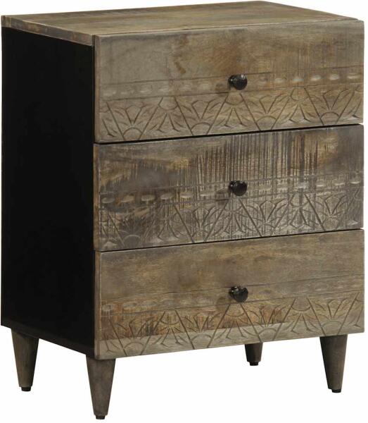 Ez az elegáns kialakítású éjjeliszekrény otthona időtálló kiegészítője. Robusztus és stabil: A tömör mangófa egy erős, trópusi keményfa, mely rendkívüli tartóssága és szilárdsága miatt különösen kedvelt a bútorgyártásban. A fa gyönyörű erezetének köszönhetően minden darab kissé különbözik a többitől. Bőséges tárolóhely: Az éjjeliszekrény bőséges