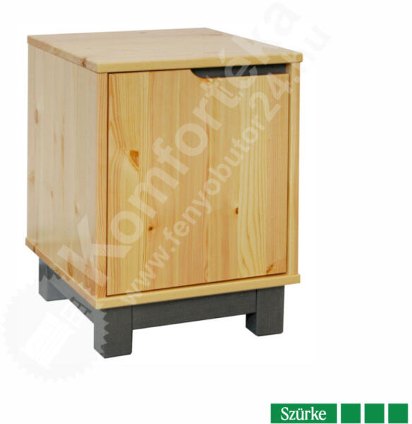 Foganttyú nélküli, modern, letisztult, elegáns, tömör fenyő éjjeliszekrény.
