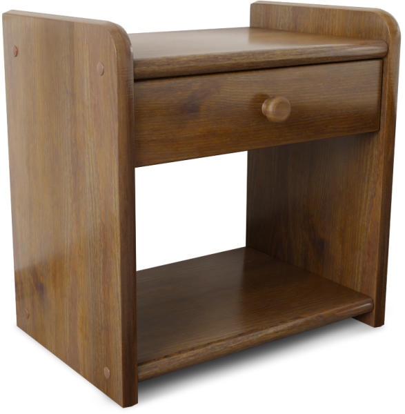 Tömör fából készült éjjeliszekrény. A kis asztal fenyőfából készül t. Az éjjeliszekrény kétszer van tölgyszínűre festve, környezetbarát színben. Az éjjeliszekrénynek fiókja és tároló rekesze is van. Az éjjeliszekrény kombinálható ágyakkal. Az asztal szilárd és stabil. Ehhez az éjjeliszekrényhez ugyanabban a színben nagyon sokféle ágyat kínálunk, nagyon ked