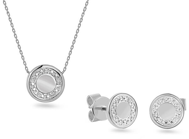Ez a tökéletes fülbevaló- és nyaklánc-készlet az időtlen minimalizmus és elegancia megtestesítője. A modern kialakítású, finoman fazettált kerek díszeket összesen tizenhárom szikrázó, briliáns csiszolású gyémánt ékesíti, amelyek minden mozdulatnál gyönyörű csillogást keltenek. Sokoldalú stílusuknak köszönhetően ez a szett bármilyen öltözékhez illik - a hét