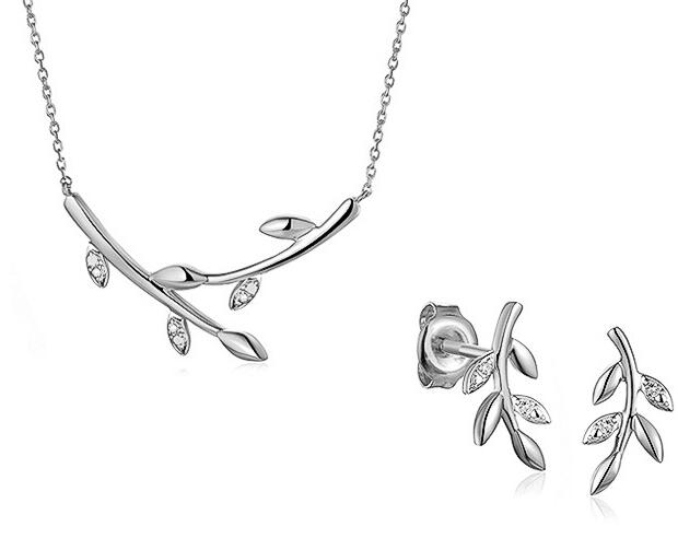 Egy olyan ékszer, amelynek egyszerűen nem tudsz ellenállni, és amely elkísér a mindennapi viseletben. Elegáns, 9 karátos fehér aranyból készült szett, amely egy nyakláncból és egy levél alakú fülbevalóból áll. A készletet összesen 7 briliáns csiszolású gyémánt díszíti, amelyek összsúlya 0,020 ct, színük H, tisztaságuk SI1. Ajánlott ajándékba.